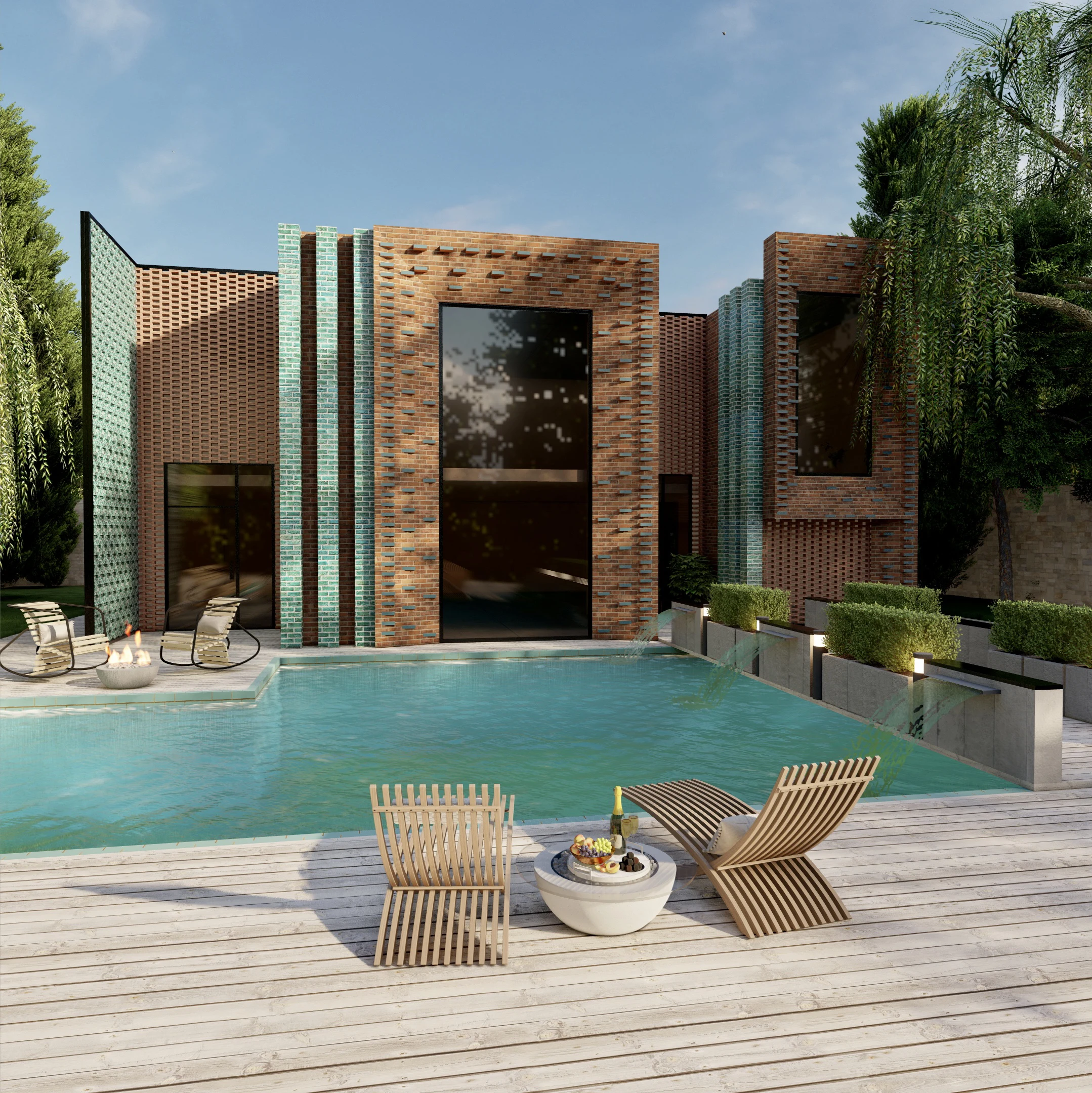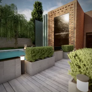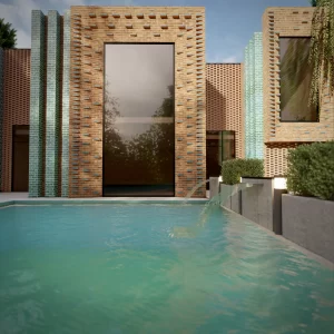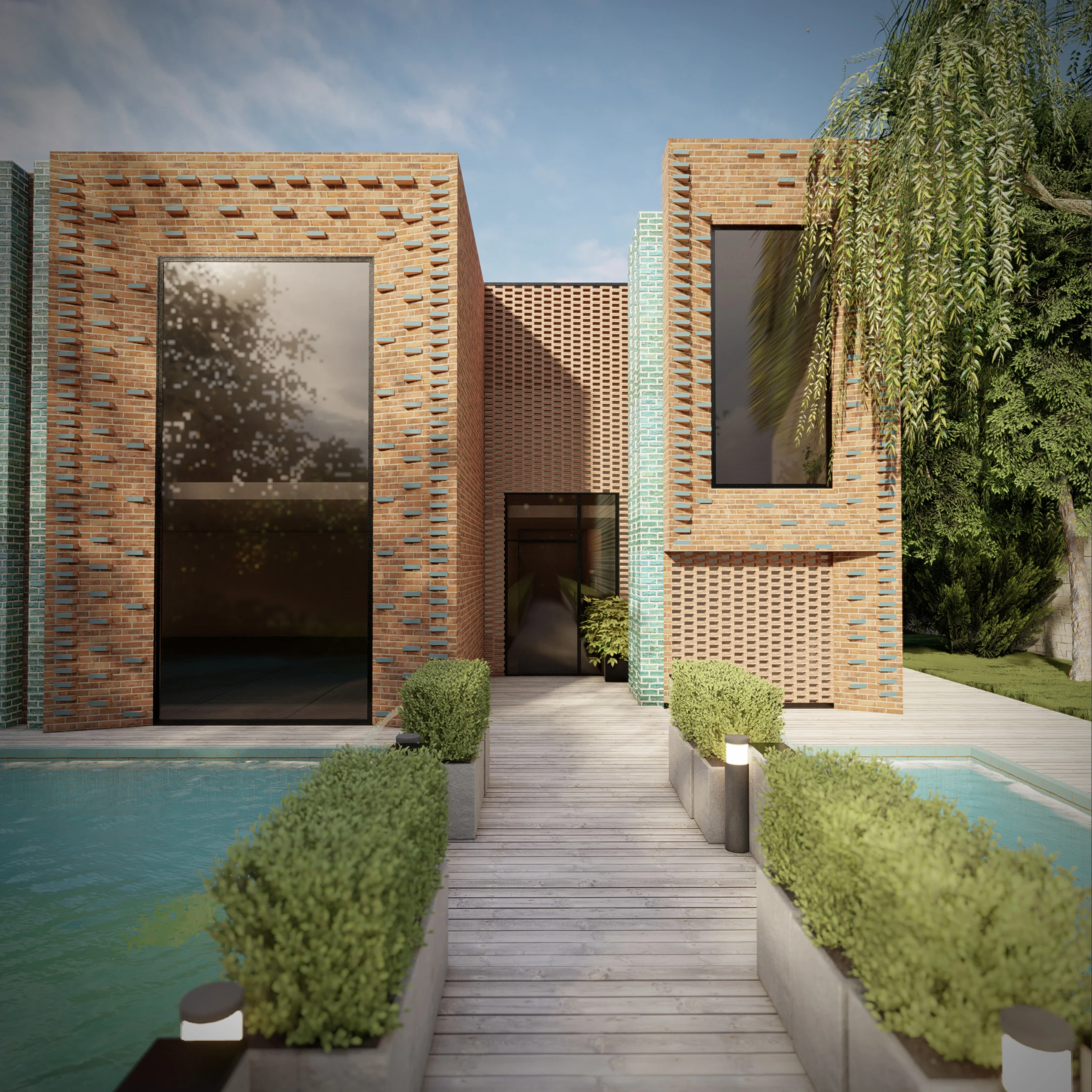 Facade design and entrance path ofSayeh Roshan VillaDesigner: Nastaran NasiriLocation: Shandiz of Mashhad