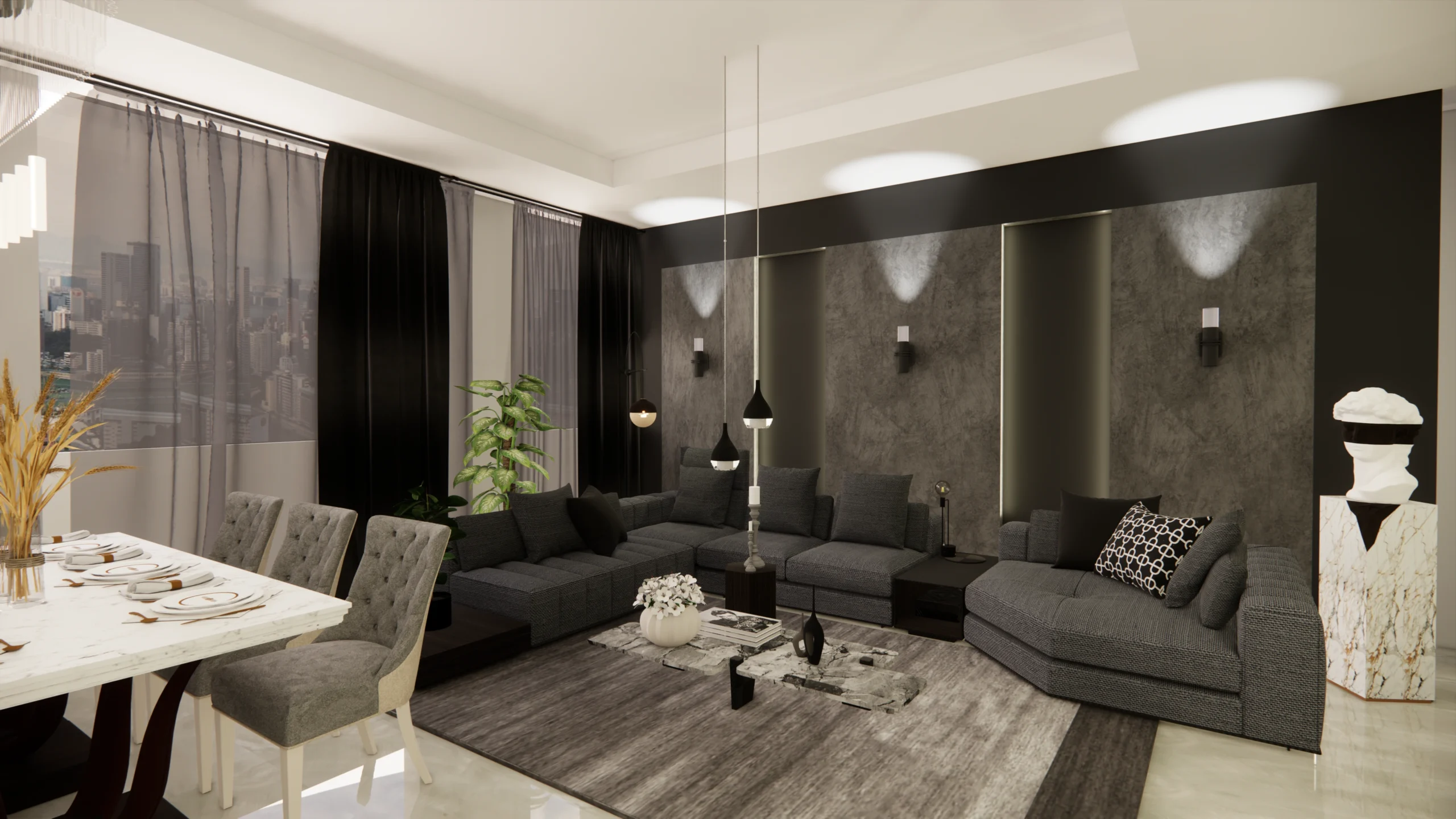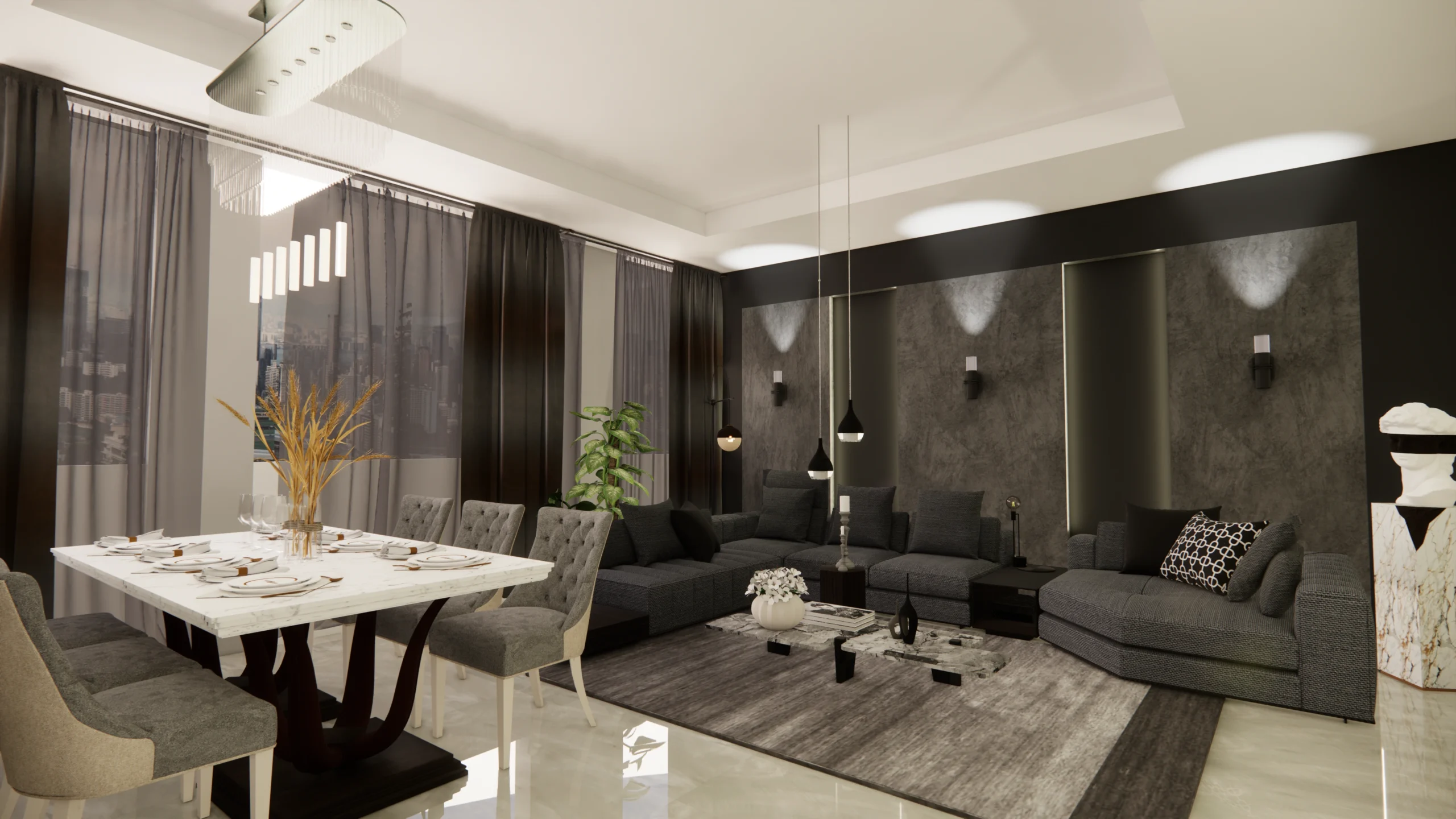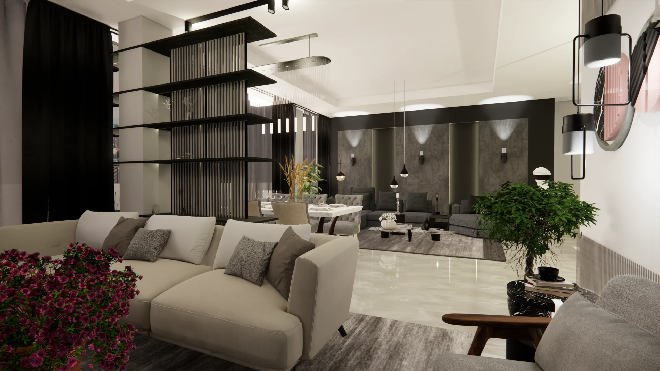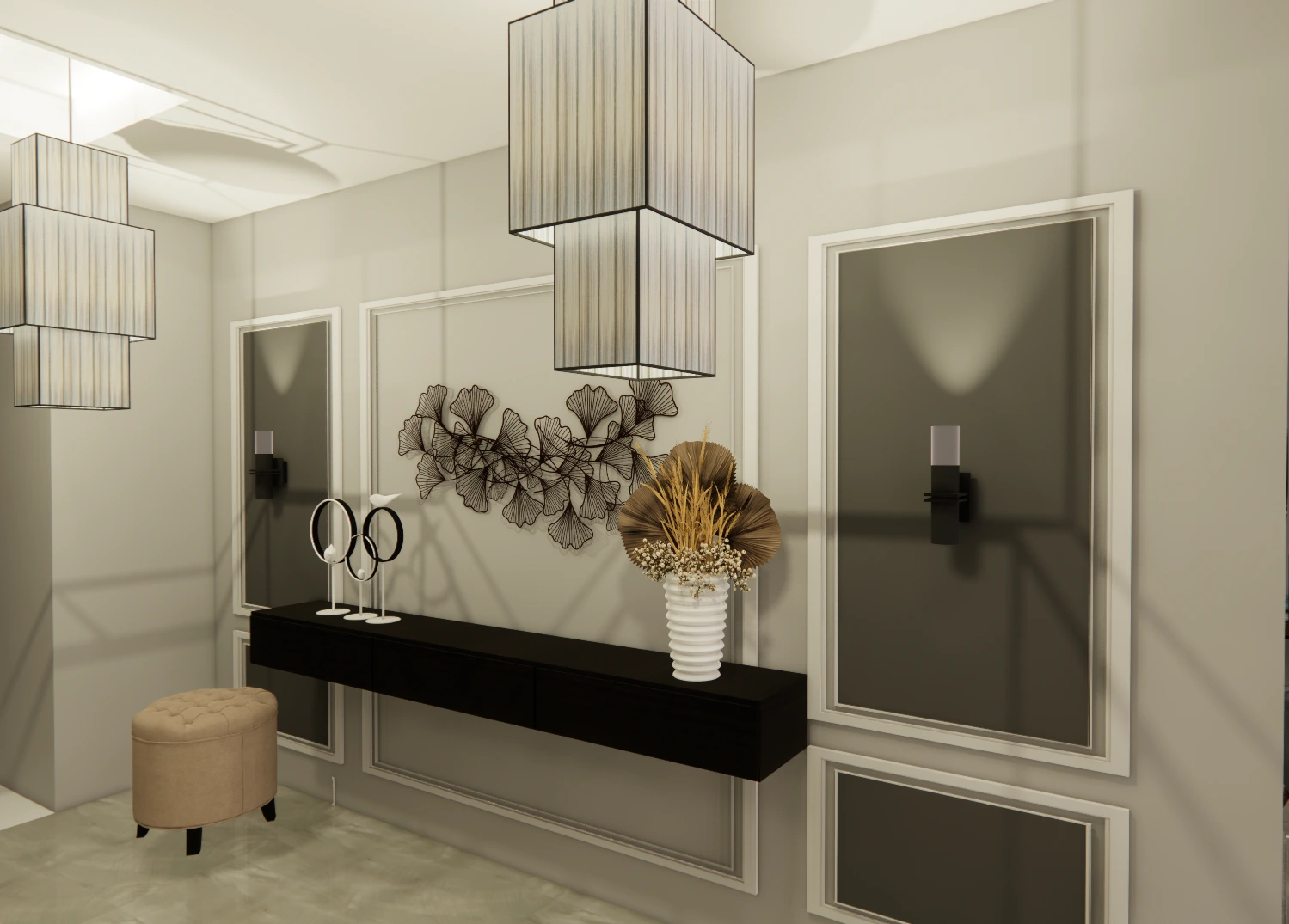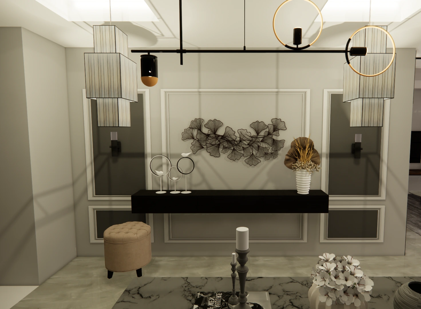 Living room, reception and front entrance design